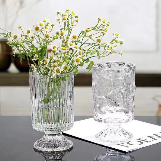 Large Clear Pedestal Vases for Centerpieces, Hewory 7.1in Crystal Glass Ribbed Footed Flower Vase, Fluted Wide Unique Decorative Vase for Wedding Birthday Anniversary Events Table Decor, Line